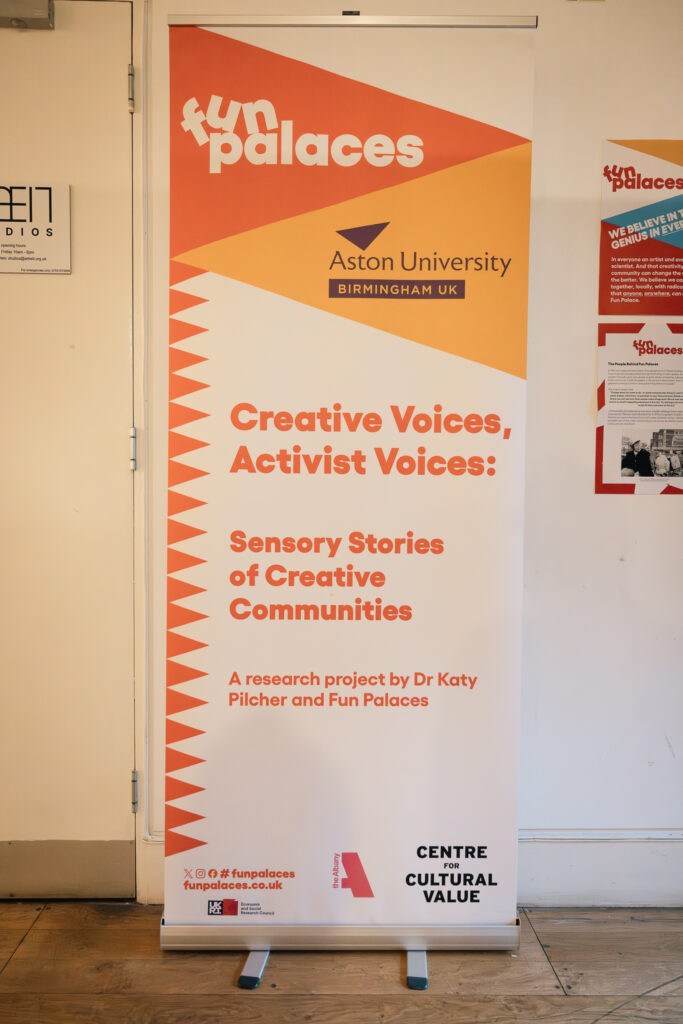 This exhibition presents findings from a research project funded by Centre for Cultural Value and jointly led by Fun Palaces and sociologist Dr Katy Pilcher. Together they investigated whether communities who make creative and cultural experiences for themselves also create ways to have their needs heard.