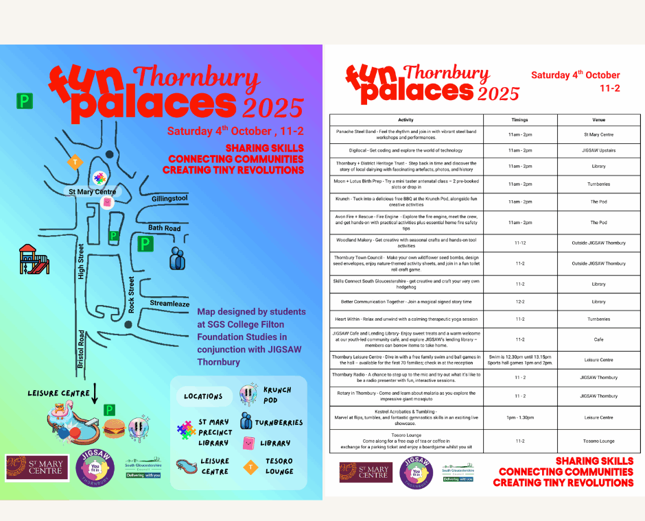 Thornbury Fun Palaces 2025Come along on Saturday 4th October, 11amโ€“2pm in Thornbury town centre for a free, community celebration of creativity, cul…